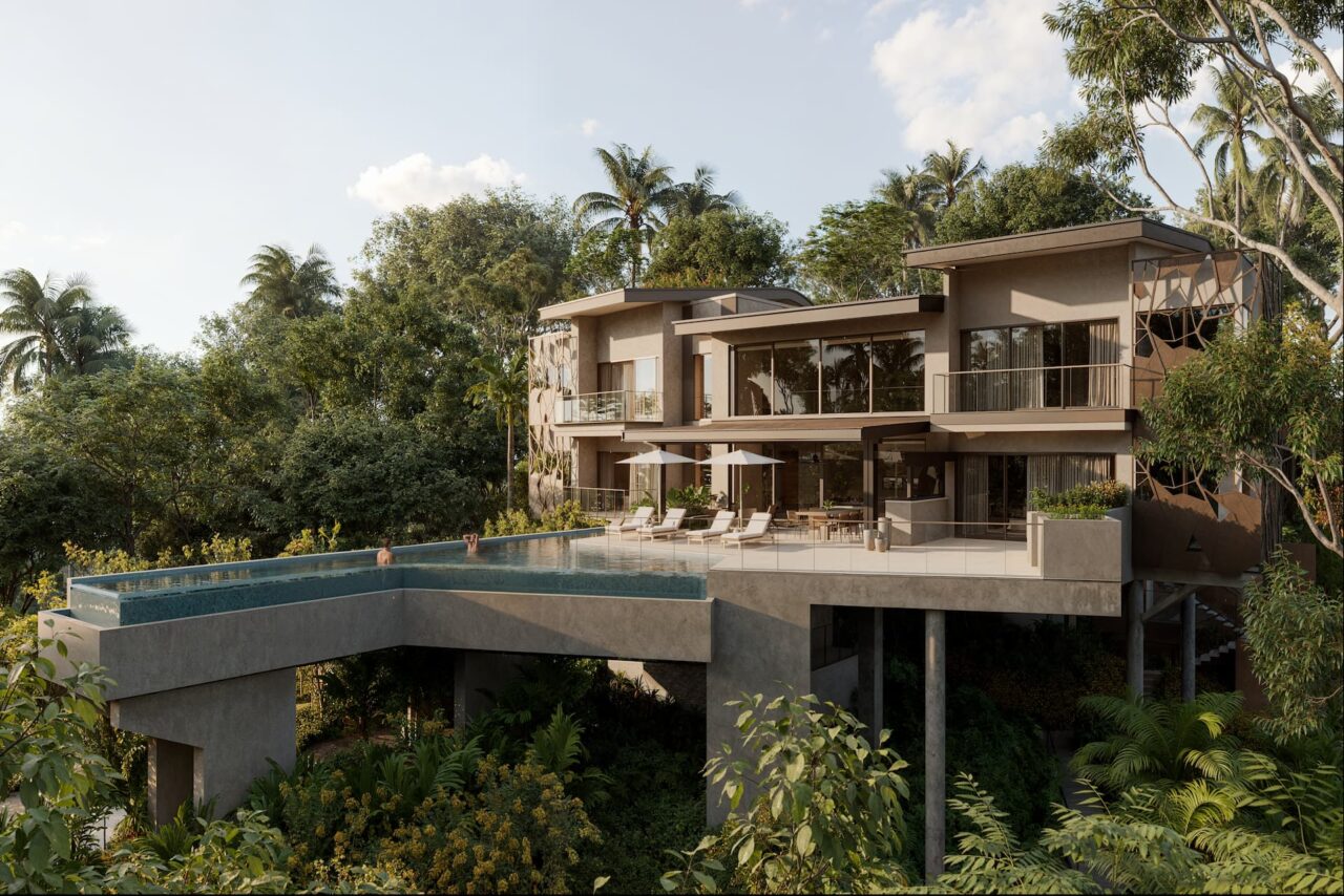 Designed by renowned architect Ronald Zürcher, the residences draw inspiration from the Guanacaste tree and are envisioned as modern “treehouses” that merge naturally into their environment. Each residence emphasizes indoor-outdoor living, high-end finishes, and panoramic views of the forest or Pacific Ocean.